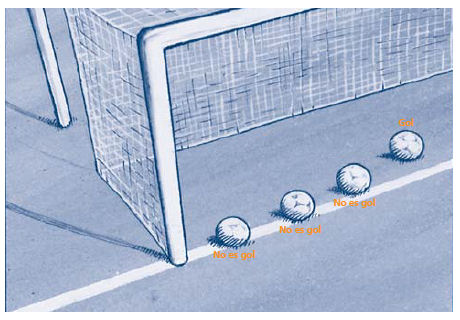 Se habrá marcado un cuando el balón haya atravesado completamente LA LINEA DE META ENTRE LOS POSTES Y DEBAJO DEL TRAVESAÑO,